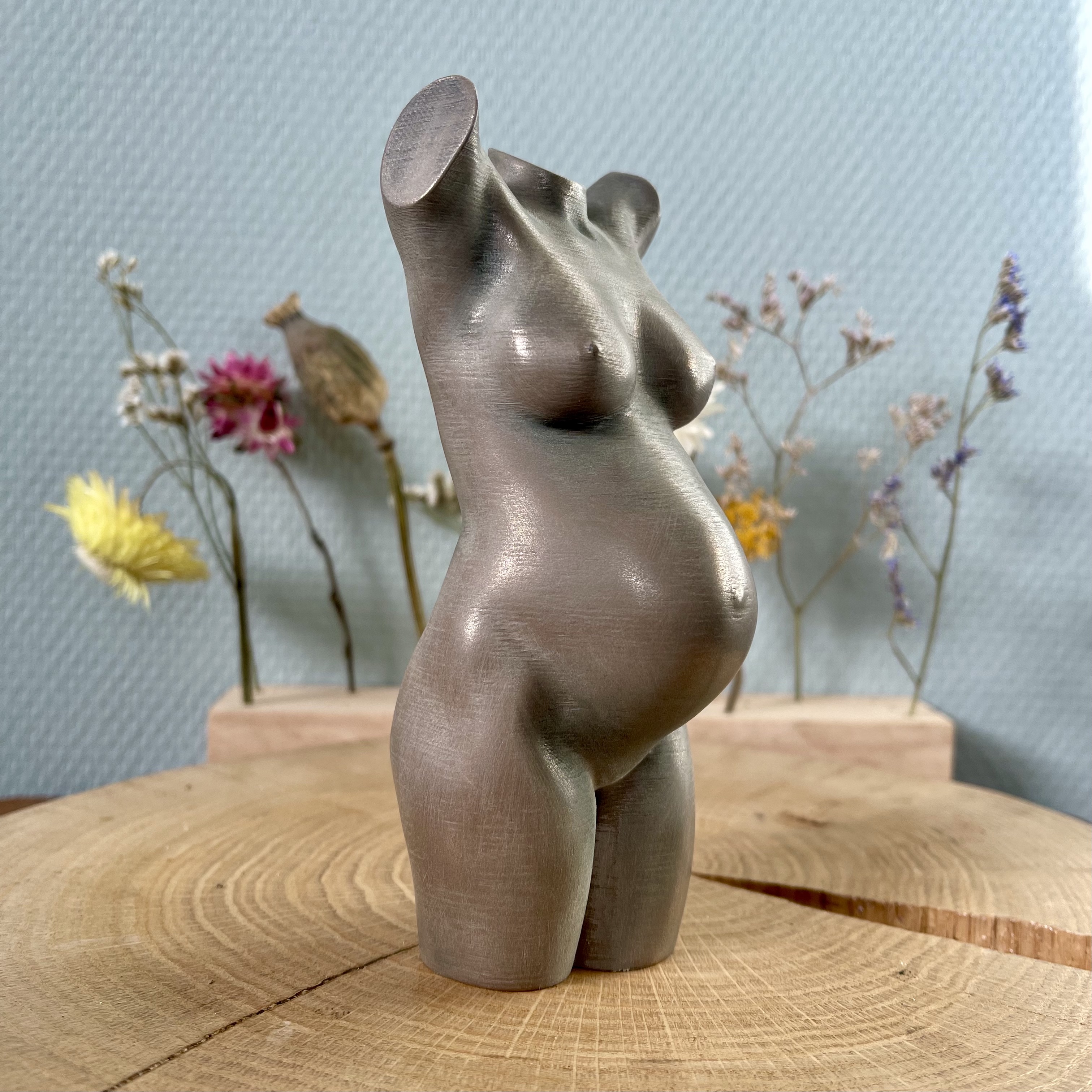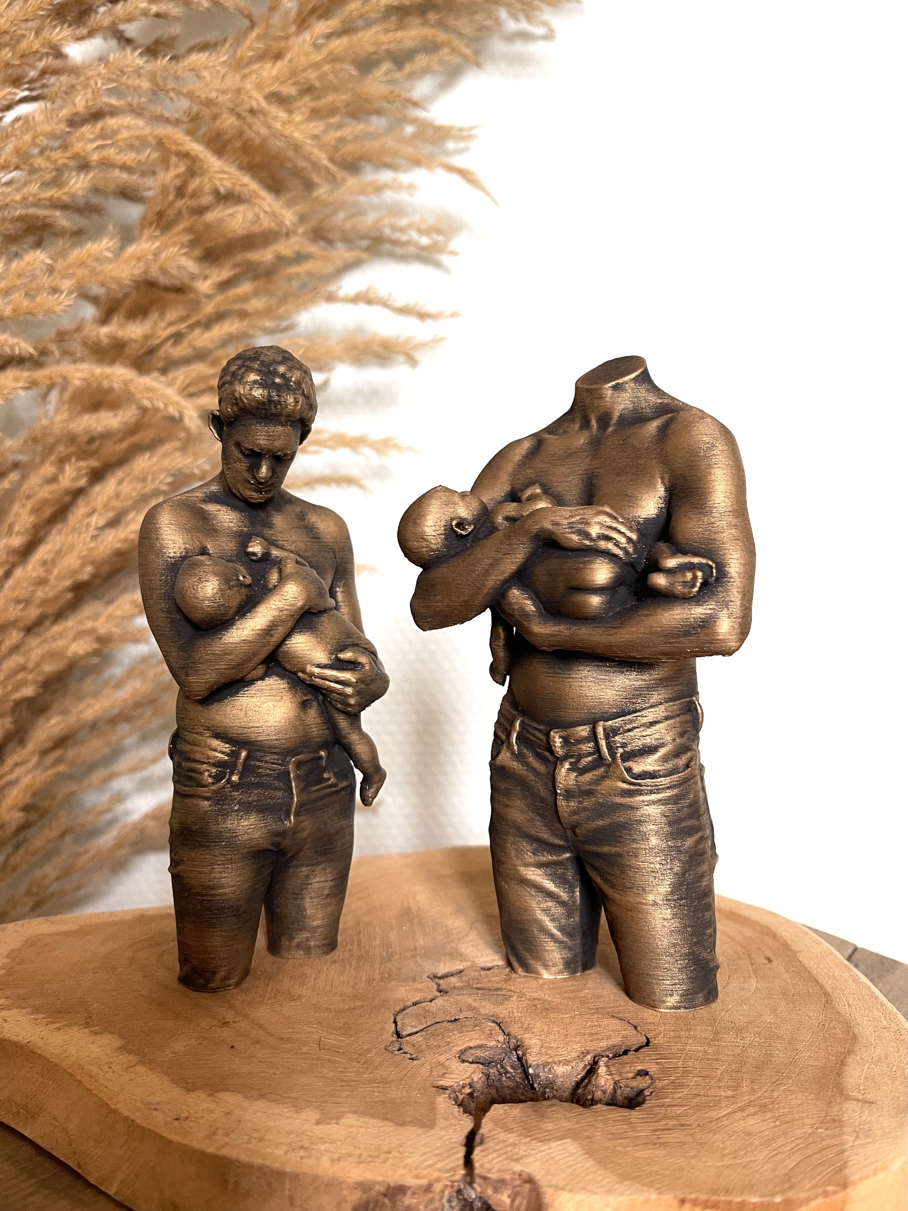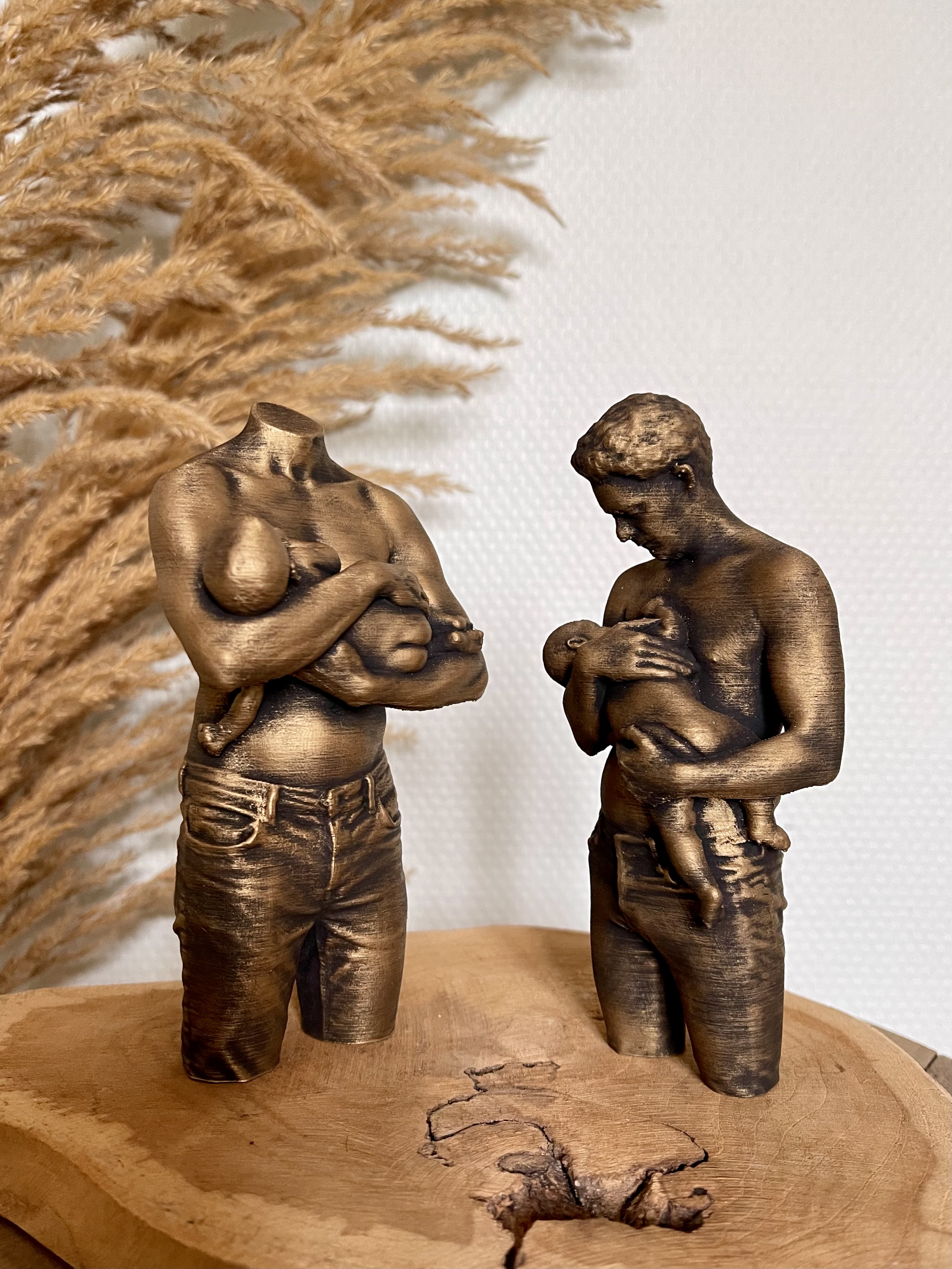 Deze beeldjes worden geprint met hoogwaardig filament en hebben heeft een mooie, neutrale kleur. De beeldjes kunnen worden geschuurd voor een rustiek verweerde look.